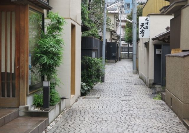 レトロモダンの美しい石畳が魅力の「かくれんぼ横丁」は、かつて花街として栄えた神楽坂の歴史を感じられるエリア。