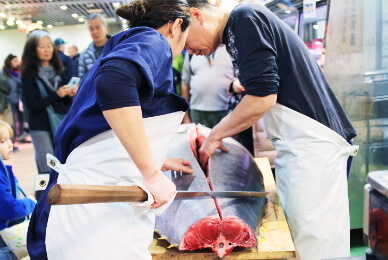 • ・午前5時から午前9時まではプロの買出人の仕入れを優先して販売を行っています。一般の方、観光客の方は午前9時以降にお越しいただくことをお勧めします。