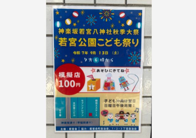 13日(土)は若宮公園で子ども祭りが行われ、模擬店も100円から楽しめます。