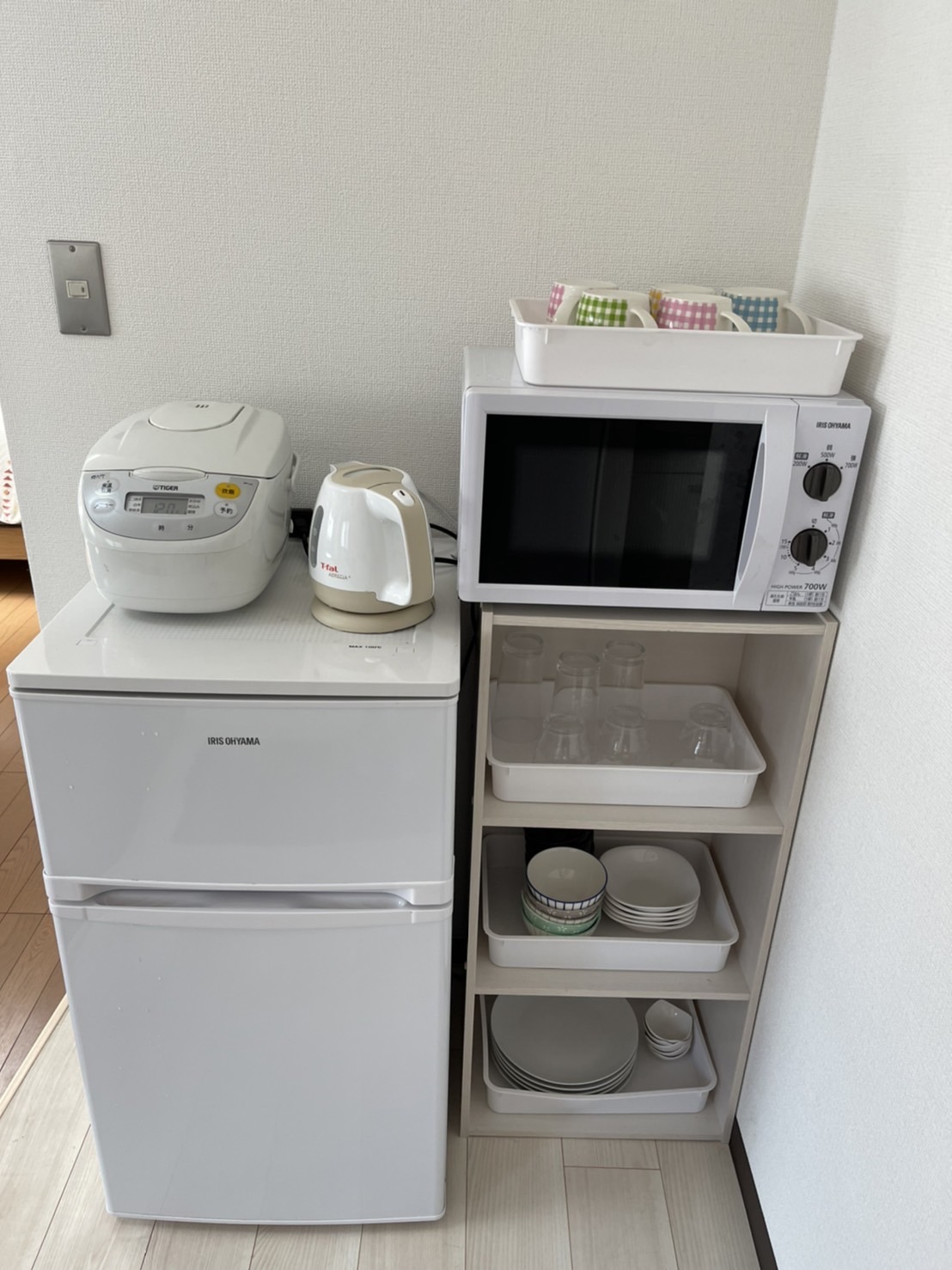 Beds, Dining Table & Chair, Refrigerator, Kettle