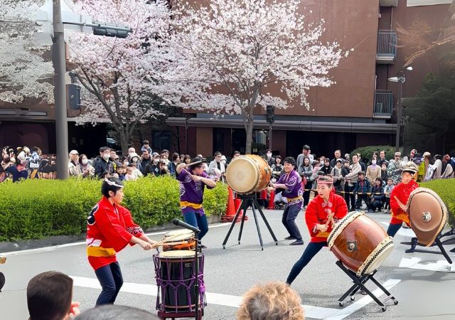文京区・播磨坂(はりまざか)のさくら並木に咲く約120本ものソメイヨシノはもちろん、和太鼓や吹奏楽のステージも楽しめるのも魅力です。
