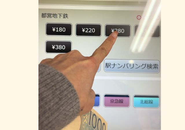 4. 行き先に該当する運賃を選び、現金を入れて切符を受け取る