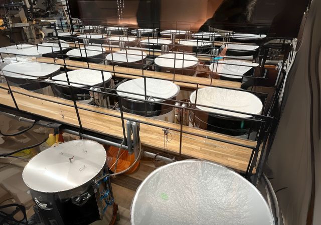 ガラス張りの見学スペースは、まさに「酒造りのライブキッチン」!」。発酵中のタンクや蔵人の作業風景を、間近で見ることができます。